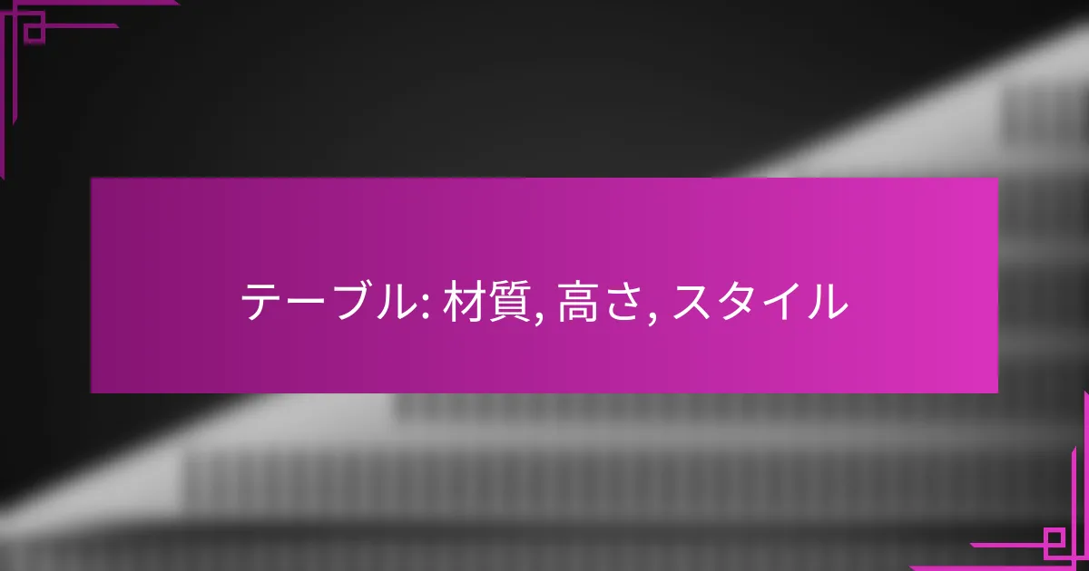 テーブルの選び方は、材質、高さ、スタイルの3つの要素が重要です。材質は使用目的やデザインに影響を与え、高さは使用する人の身長や用途に応じて調整が必要です。また、スタイルにはモダンやクラシックなどがあり、それぞれの特徴を理解することで最適なテーブルを見つけることができます。